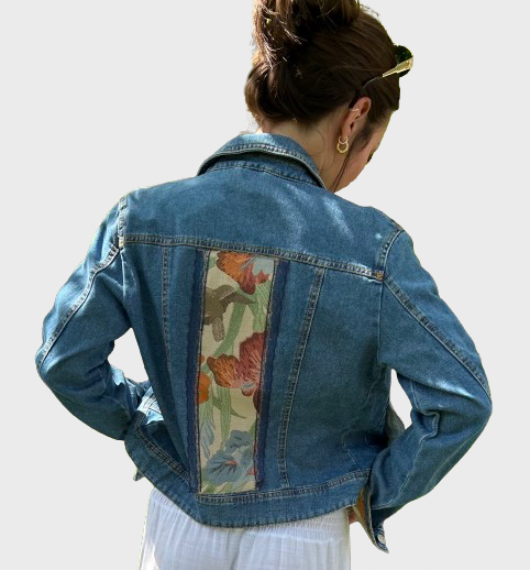 Tutte le giacche sono pezzi unici, decorate con pizzi, stoffe, pittura oppure scritte.